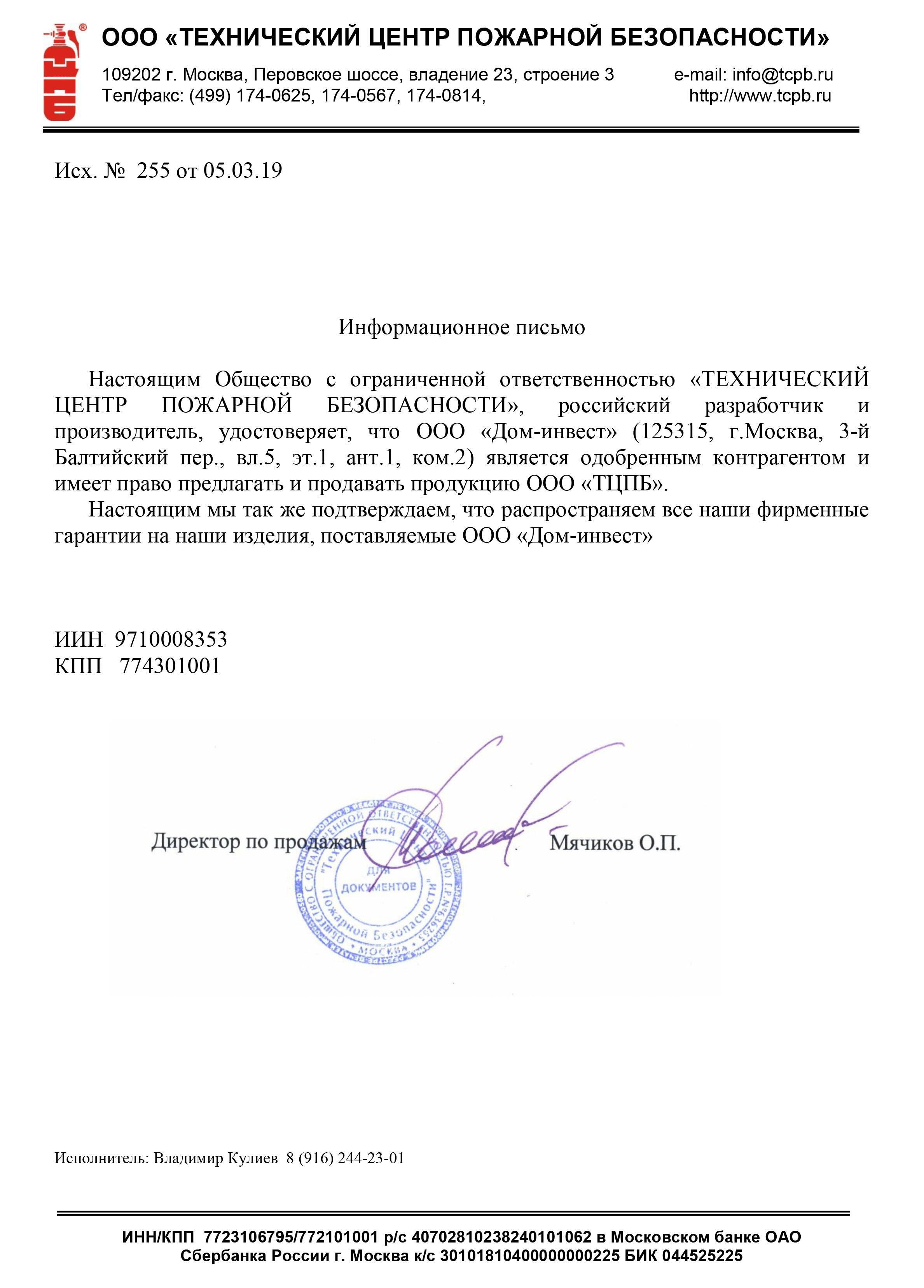 Компания ООО "Дом-инвест" является одним из Поставщиков пожарного оборудования для наших подразделений Иркутской области. Все поставки выполняются в срок и без претензий с нашей стороны.